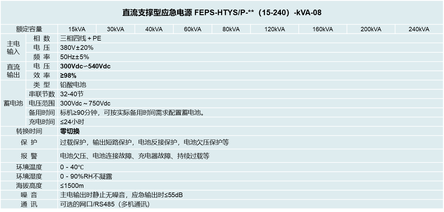 直流支撐型EPS應急電源一款工業級直流應急電源系統,專為保障關鍵設備的持續電力供應設計。它通過直流電(DC)輸出形式,在主電網故障、市電中斷或電壓波動時,為直流母線提供毫秒級響應的應急電力,確保負載?零中斷運行。