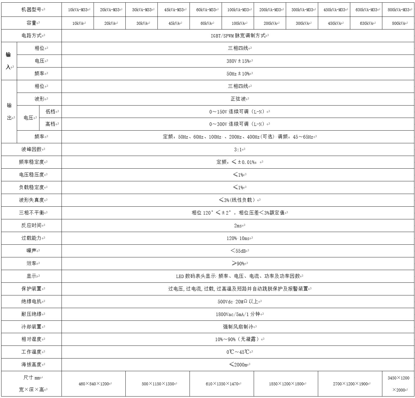 60Hz系列變頻電源三相輸入/三相輸出產品規格說明